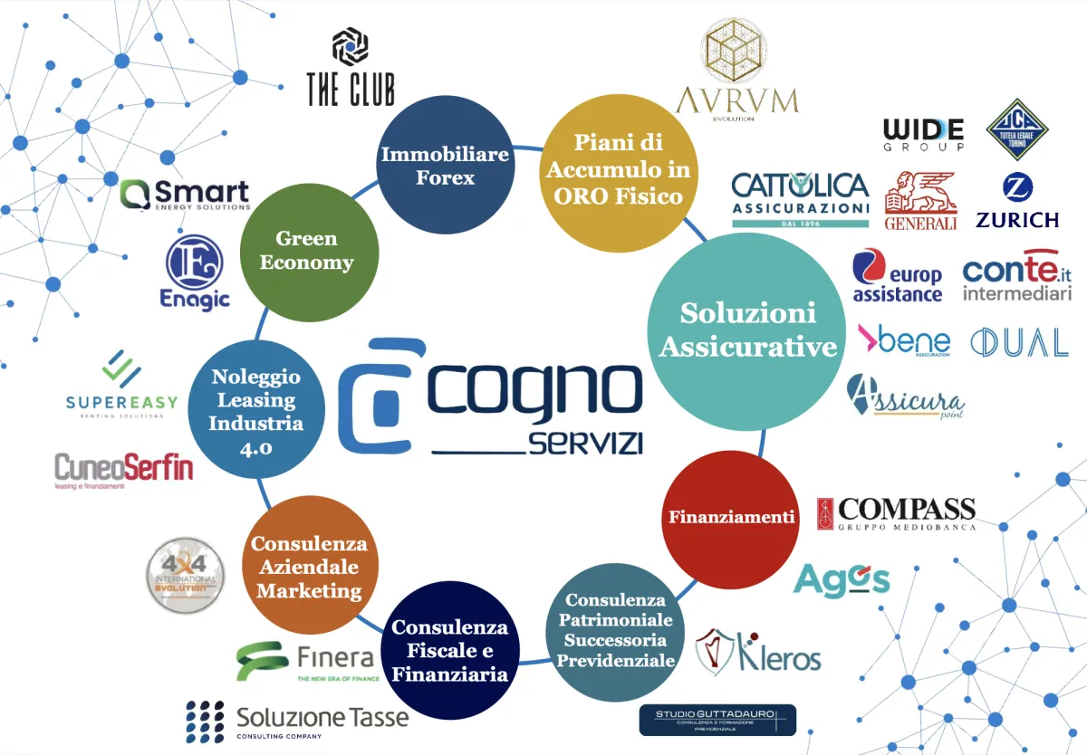 Dal 2021, nasce la Cogno Servizi srl che, per ampliare la tutela del proprio Cliente, estende i propri servizi affiancando ai mandati assicurativi importanti affiliazioni con Aziende leader nel mondo della consulenza, da quella fiscale a quella successoria e di investimento.