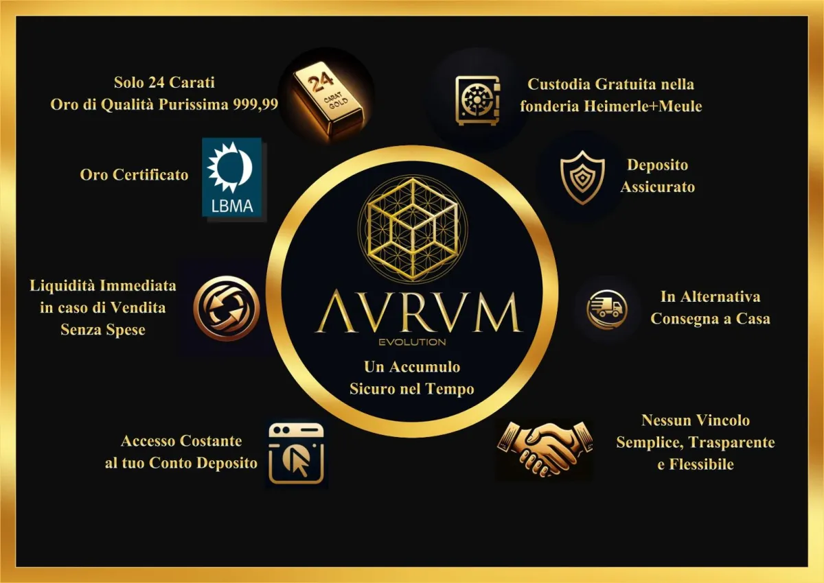 Grazie alla trentennale esperienza nel settore assicurativo/finanziario, i soci fondatori di Aurum Evolution, Francesco Daniel e Marco Cogno, sono riusciti a creare un servizio di risparmio in oro fisico per offrire alle famiglie italiane la possibilità di acquistare oro con semplicità, trasparenza, sicurezza e, soprattutto, con la massima libertà da qualsiasi vincolo contrattuale.Attraverso la collaborazione diretta con una delle prime aziende tedesche del settore, nonché la più antica fonderia tedesca, la Heimerle+Meule di Pforzheim, Aurum Evolution si dedica all'approvvigionamento di oro fisico e ne garantisce la massima qualità e purezza, offrendo anche il servizio di deposito e gestione del vostro oro.